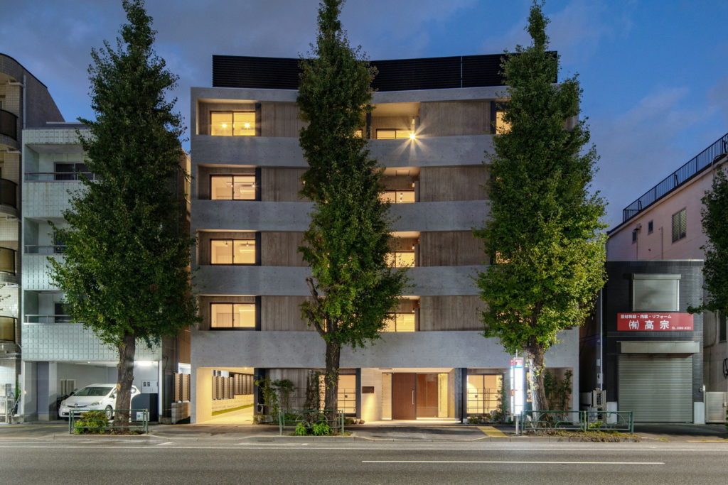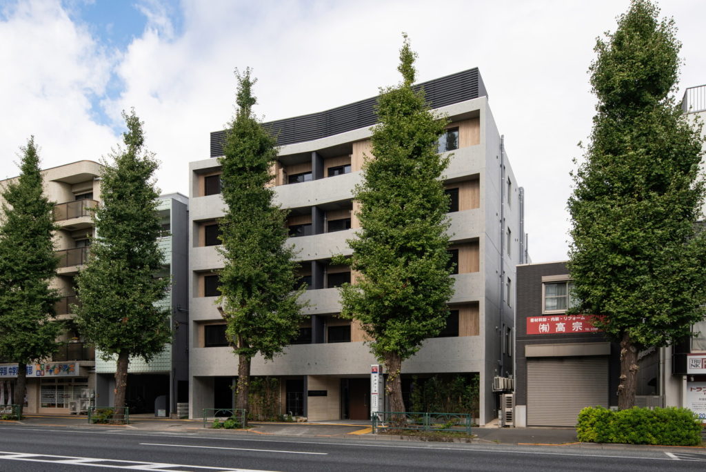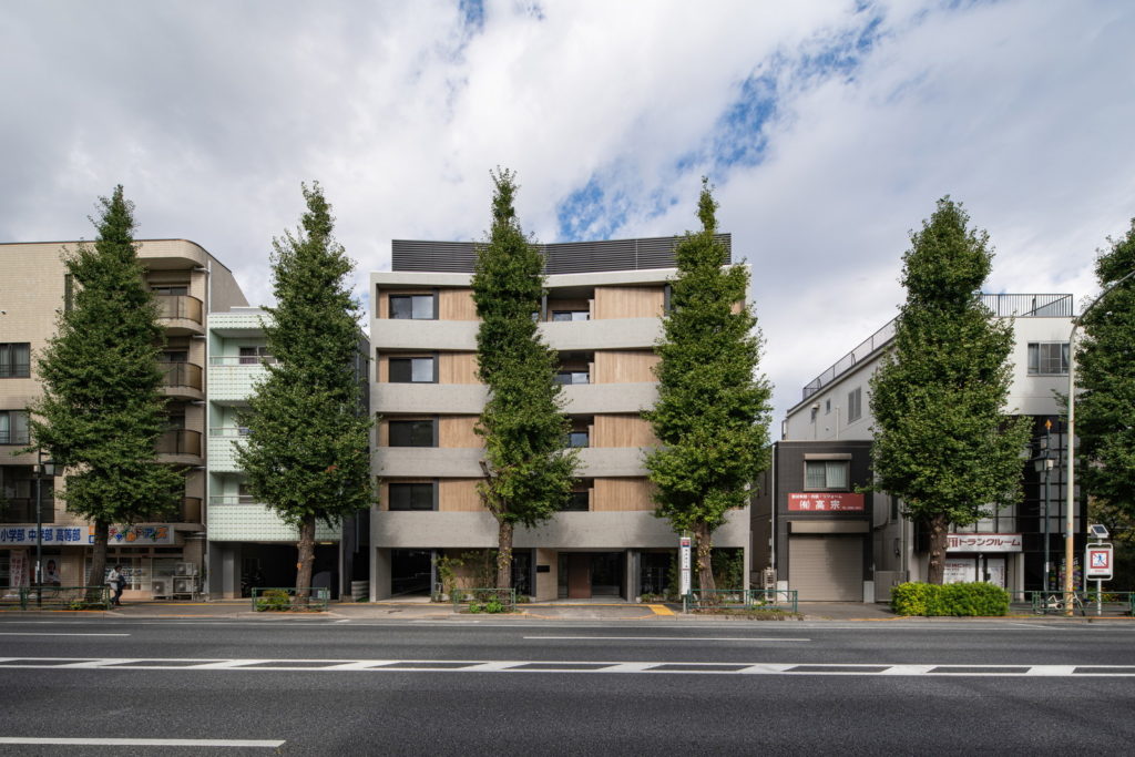 青梅街道の銀杏並木に面した敷地。ファミリー層とDINKsに向けた快適な住環境づくりが要求されました。